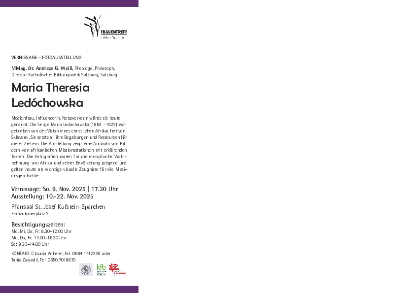 KONTAKT: Claudia Acherer, Tel. 0664 1412239 oder